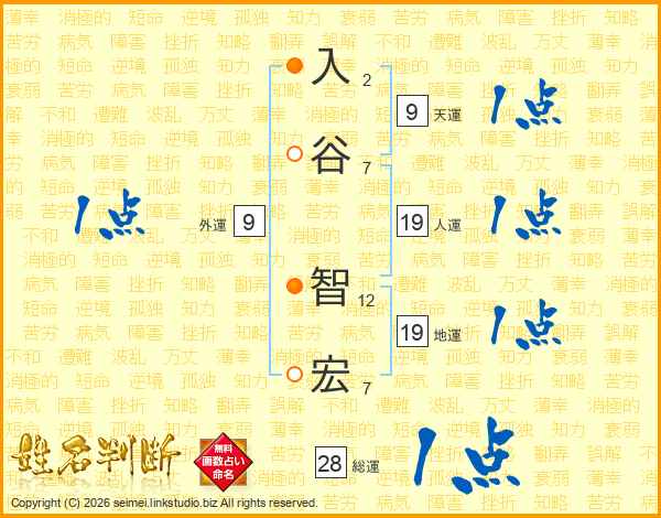 入谷智宏さんの人運は19画の1点!