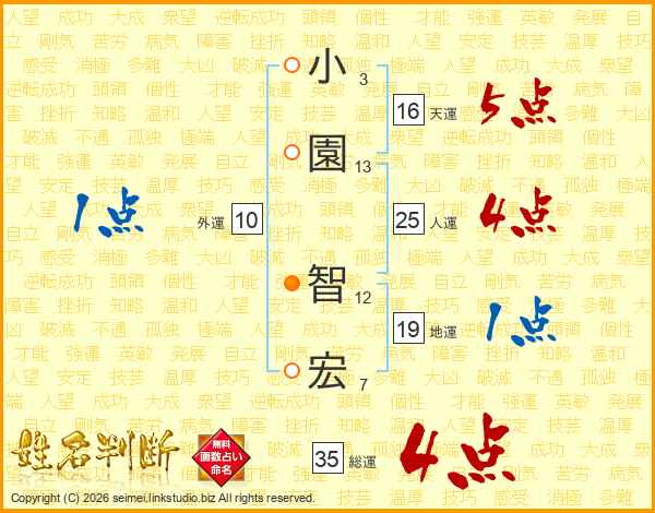 小園智宏さんの総運は35画の4点!