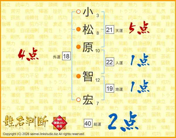 小(3画)松(8画)原(10画) 智(12画)宏(7画)