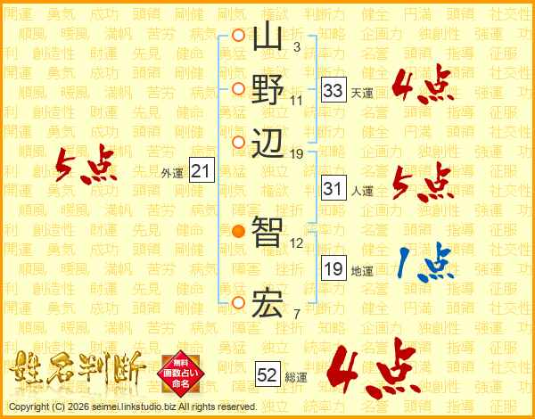 山野辺智宏さんの天運は33画の4点!