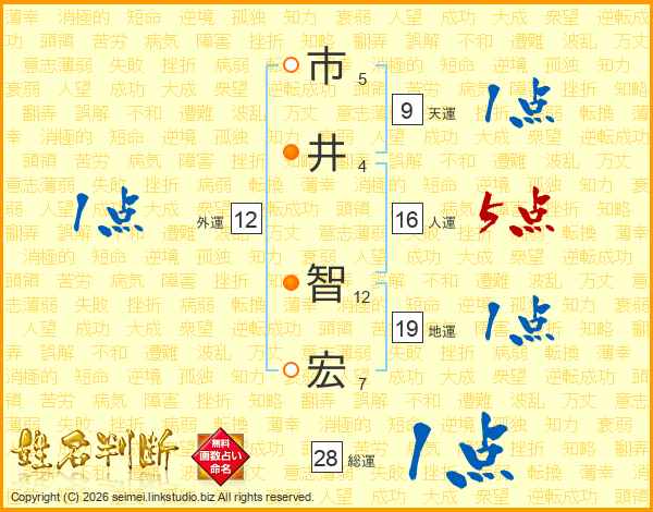市(5画)井(4画) 智(12画)宏(7画)