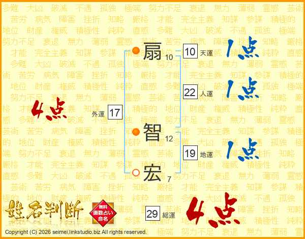 扇智宏さんの総運は29画の4点!
