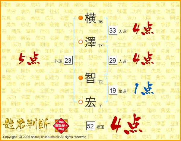横澤智宏さんの総運は52画の4点!