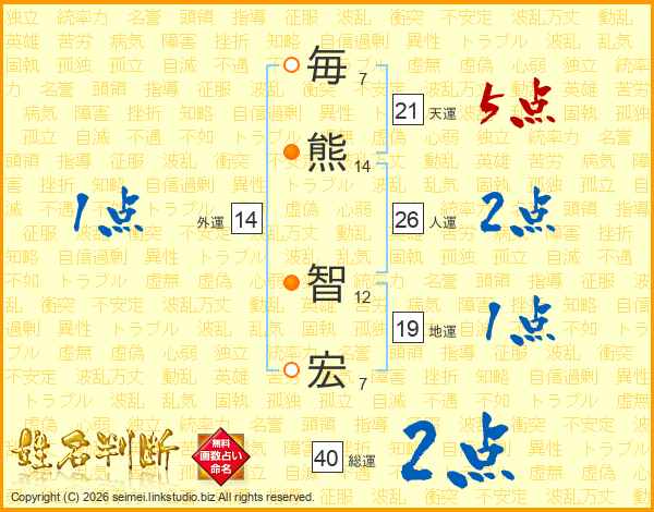毎熊智宏さんの人運は26画の2点!