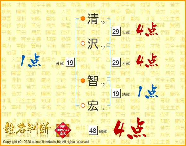 清沢智宏さんの総運は48画の4点!