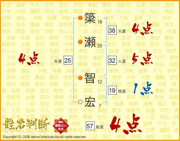簗(18画)瀬(20画) 智(12画)宏(7画)
