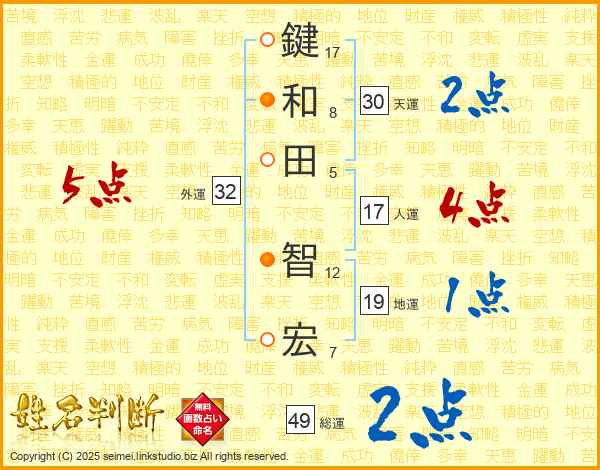 鍵和田智宏さんの天運は30画の2点!