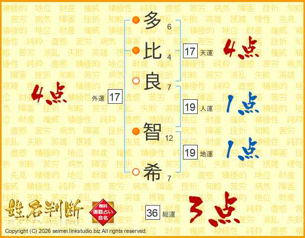 多(6画)比(4画)良(7画) 智(12画)希(7画)