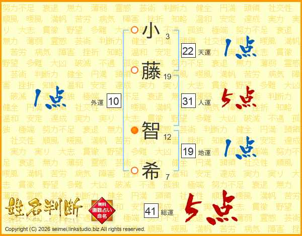 小藤智希さんの総運は41画の5点!