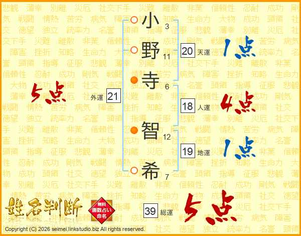 小野寺智希さんの総運は39画の5点!