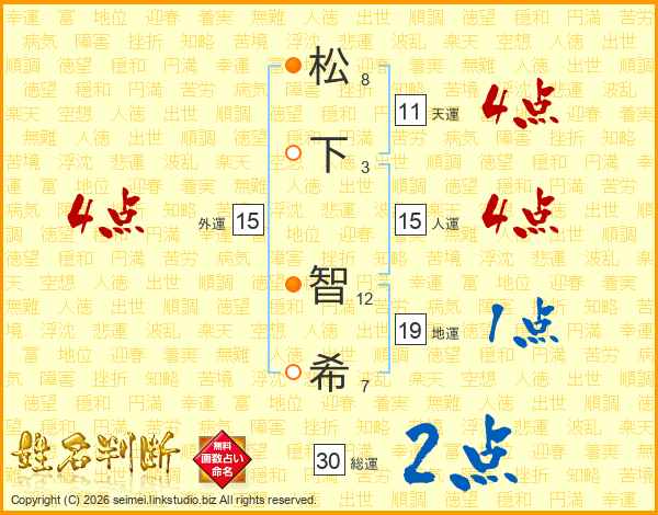 松下智希さんの総運は30画の2点!