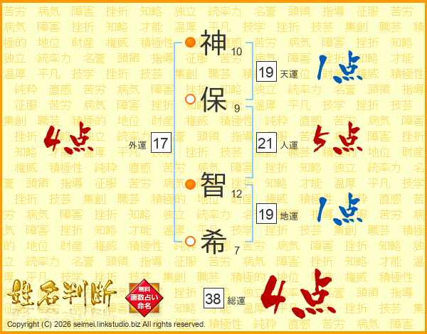 神(10画)保(9画) 智(12画)希(7画)