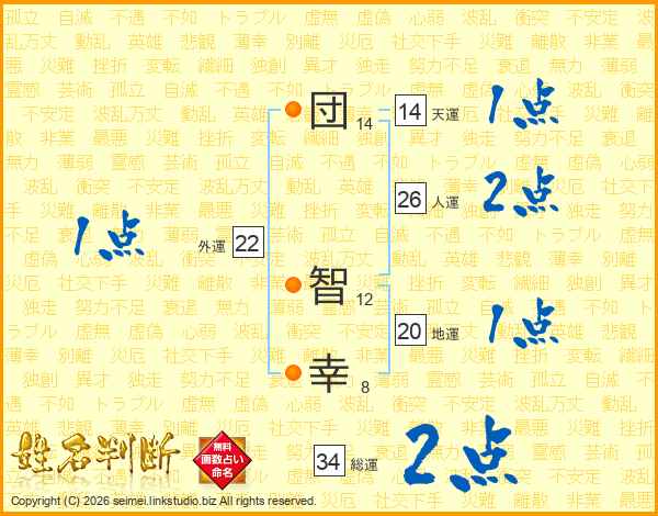 団(14画) 智(12画)幸(8画)