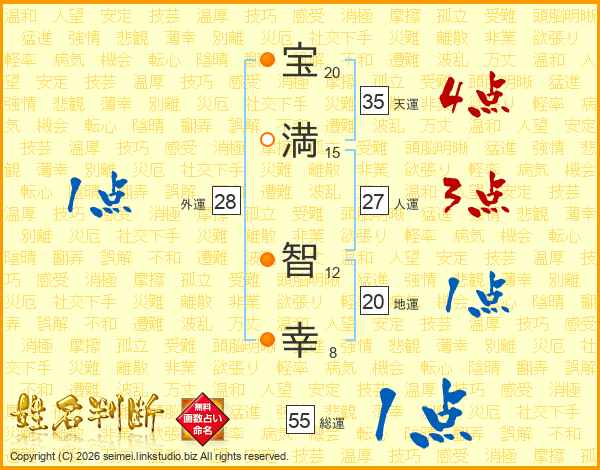 宝(20画)満(15画) 智(12画)幸(8画)
