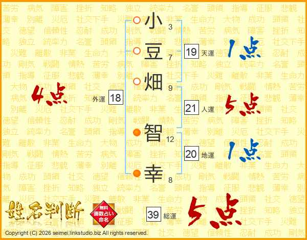 小豆畑智幸さんの総運は39画の5点!