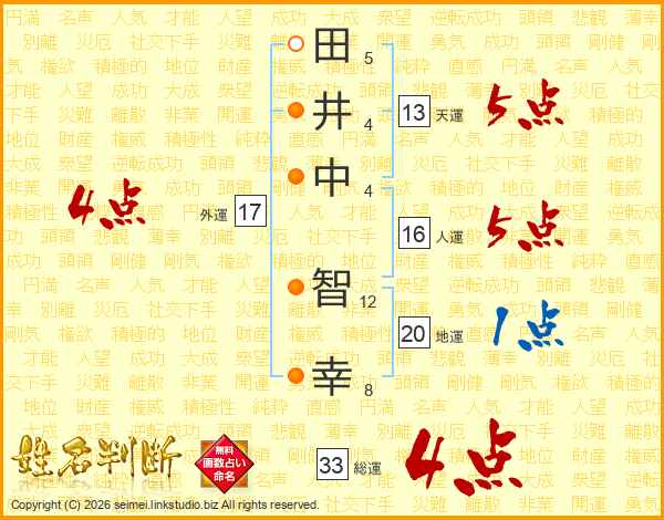 田井中智幸さんの総運は33画の4点!