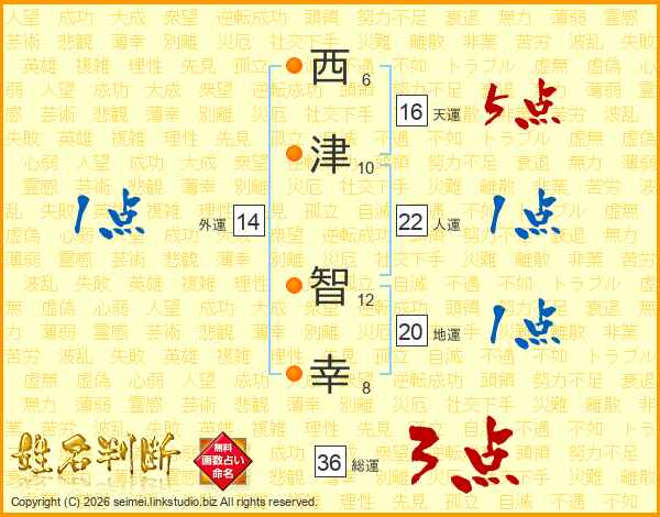 西津智幸さんの人運は22画の1点!