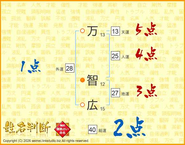 万(13画) 智(12画)広(15画)