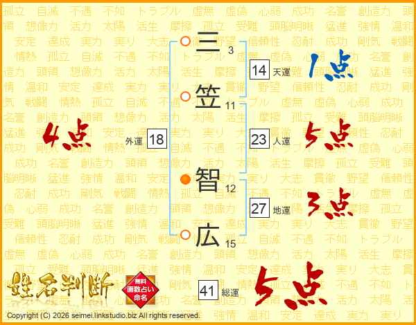 三笠智広さんの総運は41画の5点!