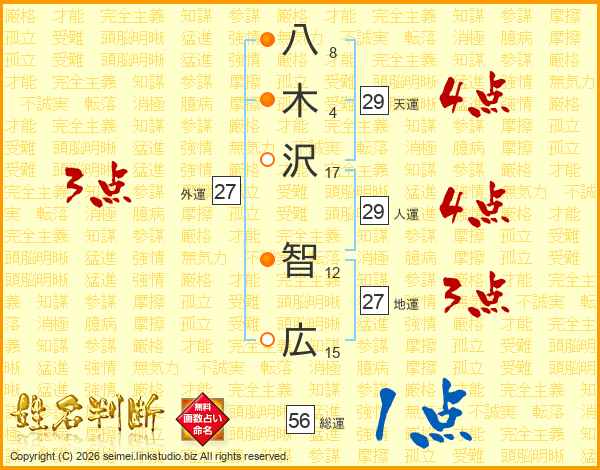 八木沢智広さんの総運は56画の1点!