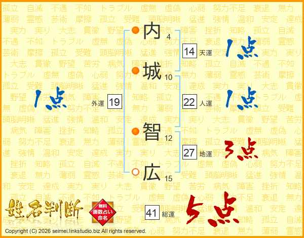 内城智広さんの天運は14画の1点!