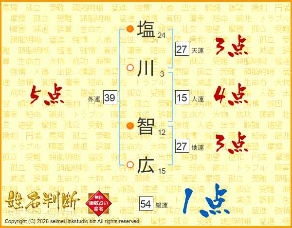 塩(24画)川(3画) 智(12画)広(15画)
