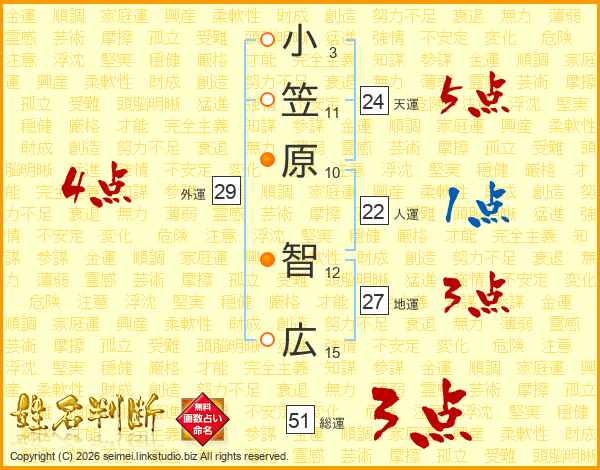 小笠原智広さんの天運は24画の5点!