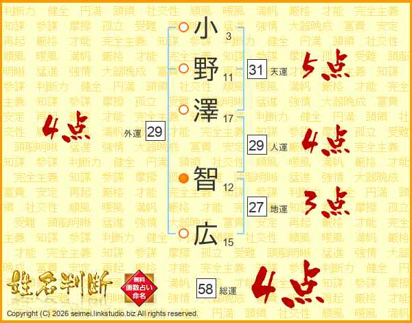 小野澤智広さんの総運は58画の4点!