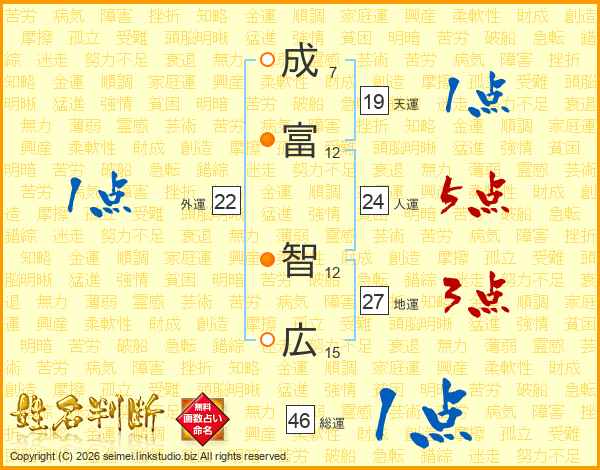 金運 順調 家庭運 興産 柔軟性 財成 創造