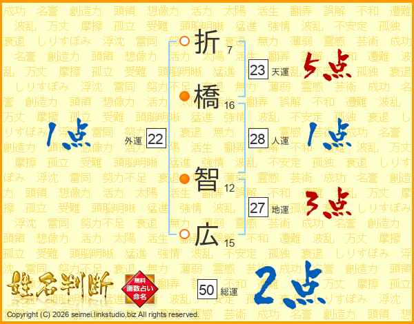 折(7画)橋(16画) 智(12画)広(15画)