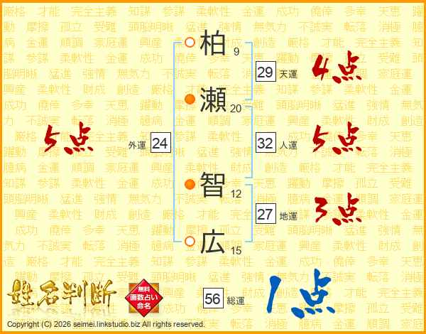柏瀬智広さんの総運は56画の1点!