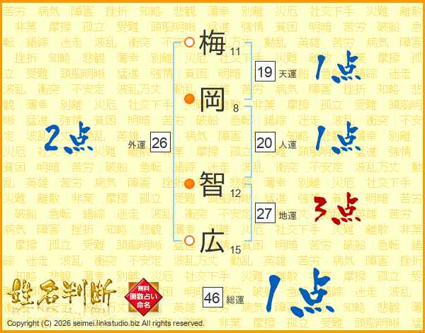 梅岡智広さんの人運は20画の1点!
