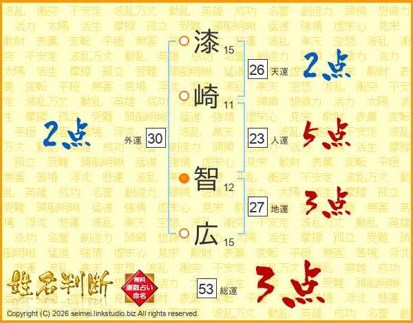 漆崎智広さんの天運は26画の2点!