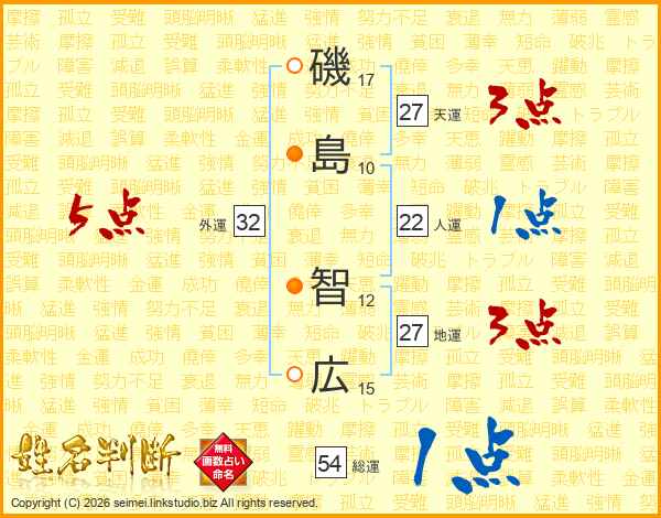 磯島智広さんの天運は27画の3点!