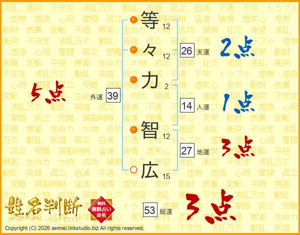 等々力智広さんの天運は26画の2点!