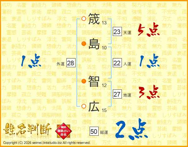 筬(13画)島(10画) 智(12画)広(15画)