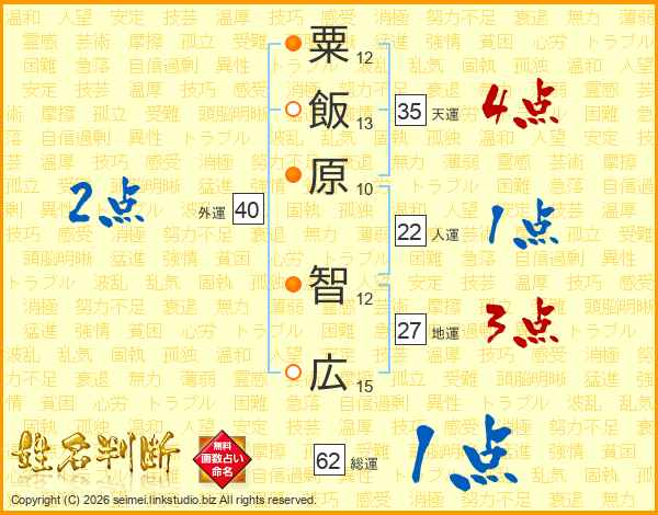 粟(12画)飯(13画)原(10画) 智(12画)広(15画)