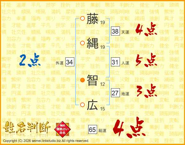 藤(19画)縄(19画) 智(12画)広(15画)