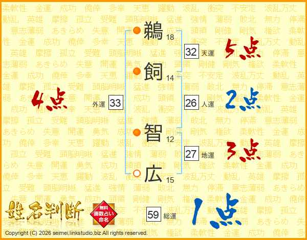 鵜飼智広さんの人運は26画の2点!