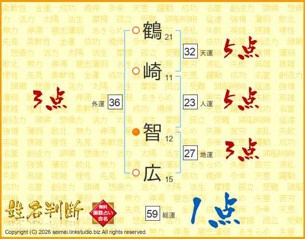 鶴(21画)崎(11画) 智(12画)広(15画)