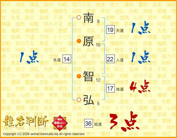 南原智弘さんの天運は19画の1点!