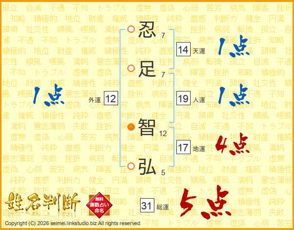 忍(7画)足(7画) 智(12画)弘(5画)