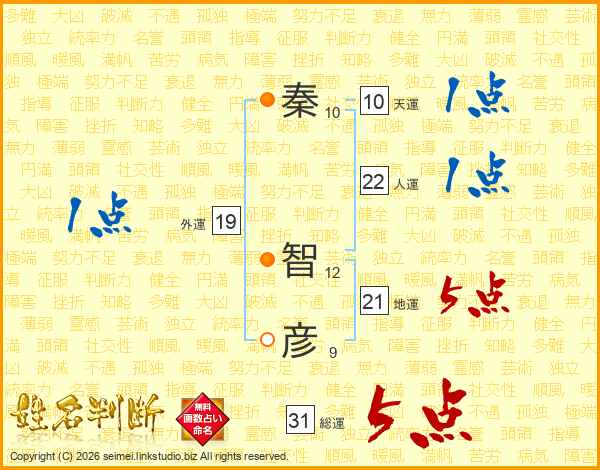 秦智彦さんの総運は31画の5点!