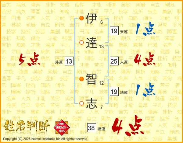 伊達智志さんの総運は38画の4点!