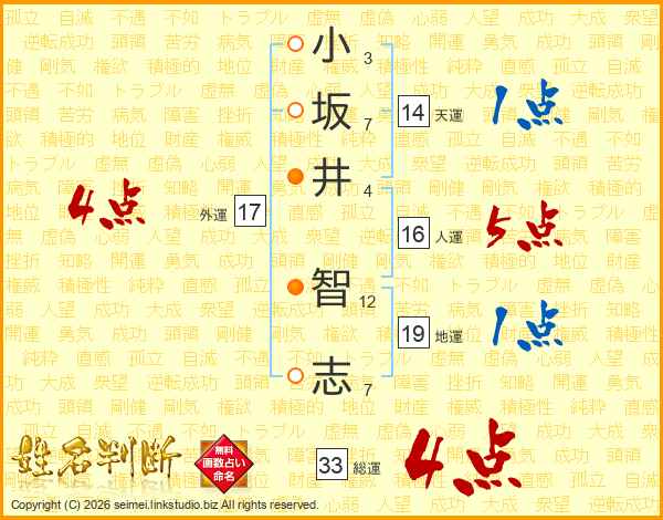 小坂井智志さんの総運は33画の4点!