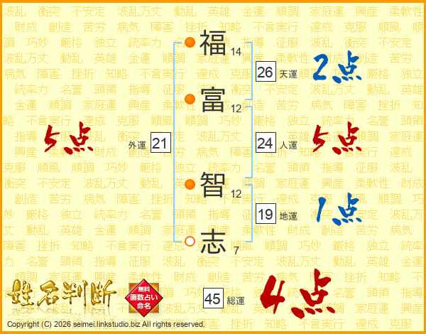 福(14画)富(12画) 智(12画)志(7画)