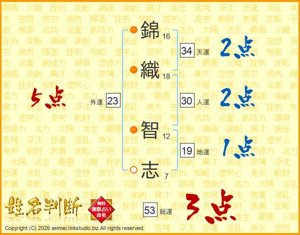 錦(16画)織(18画) 智(12画)志(7画)