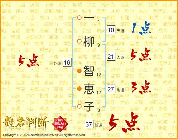 一柳智恵子さんの総運は37画の5点!