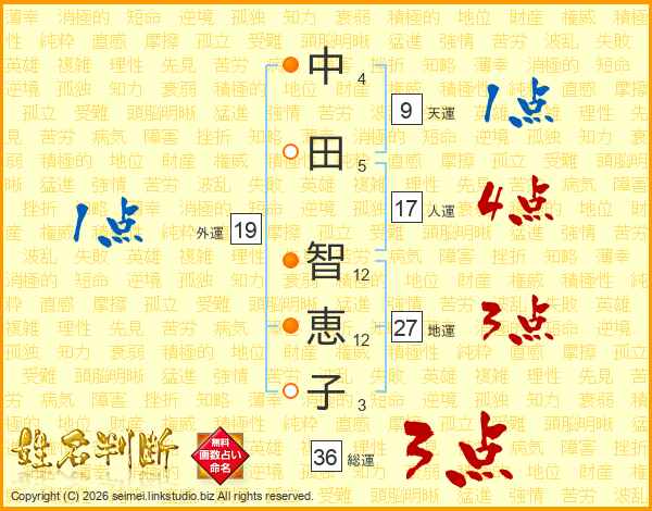中田智恵子さんの総運は36画の3点!