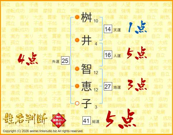 桝(10画)井(4画) 智(12画)恵(12画)子(3画)